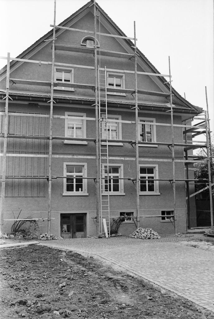 Die Fassadenrenovation führte die Keller AG, Stetten, aus. Rechts der Altbau, links (nur teilweise sichtbar) der Neubau.