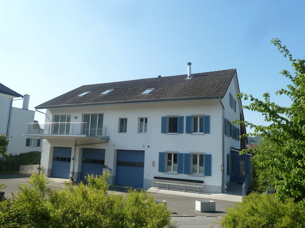 2003 Umbau der Liegenschaft Zeier, Grumetweg 1 und 3. Während man den Wohntrakt rechts stehen liess und restaurierte, wurde der linke Teil mit Garagen und Wohnräumen darüber von Grund auf neu aufgebaut.