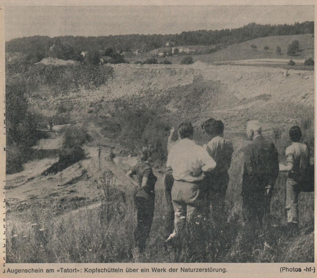 "Aus dem BT-Artikel vom 18. August 1973 ist ersichtlich, dass sich Grundeigentümer und Naturschutzkreise über die Grösse des auszuscheidenden Schutzgebietes nicht einigen können. Die Sand- und Kieswerk AG offeriert 8000 Quadratmeter ihrer Grube zu Naturschutzzwecken freizuhalten. Die genauen Abklärungen haben leider gezeigt, dass zur Erhaltung der heutigen Vielfalt von Tieren und Pflanzen eine Mindestfläche von 12 000 Quadratmetern nötig ist.