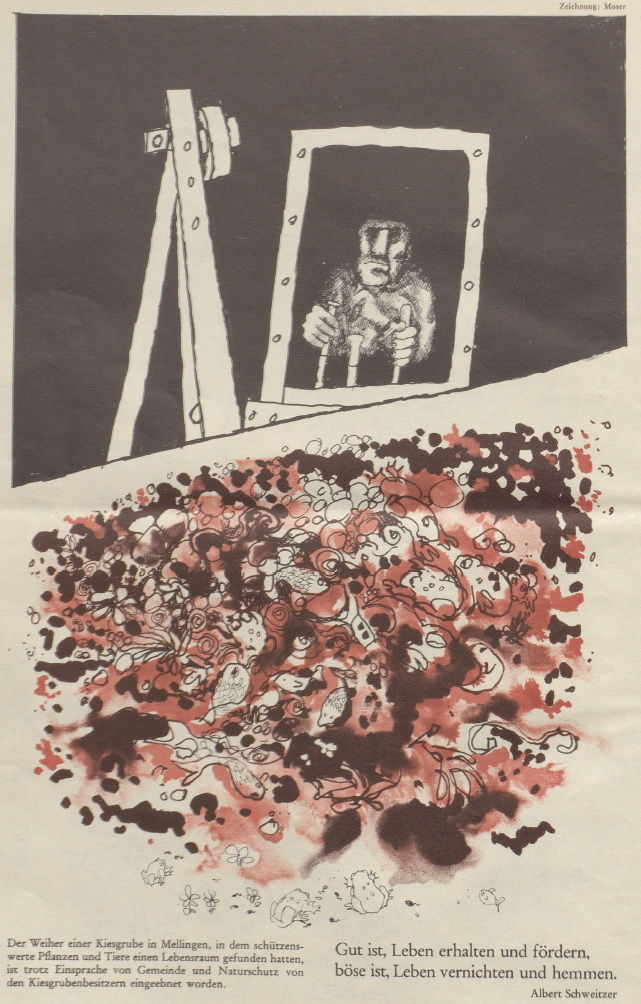 Das Radener Tagblatt hat in seiner Ausgabe vom 18. August dieses Jahres [1973] über den letzten Stand im Kampf um die Erhaltung des Ebereichs in Mellingen unterrichtet. H. R. Henz, Regionalplaner der Firma Metron in Brugg nimmt im Folgenden Stellung dazu und schildert die Schwierigkeiten, die noch immer bestehen.