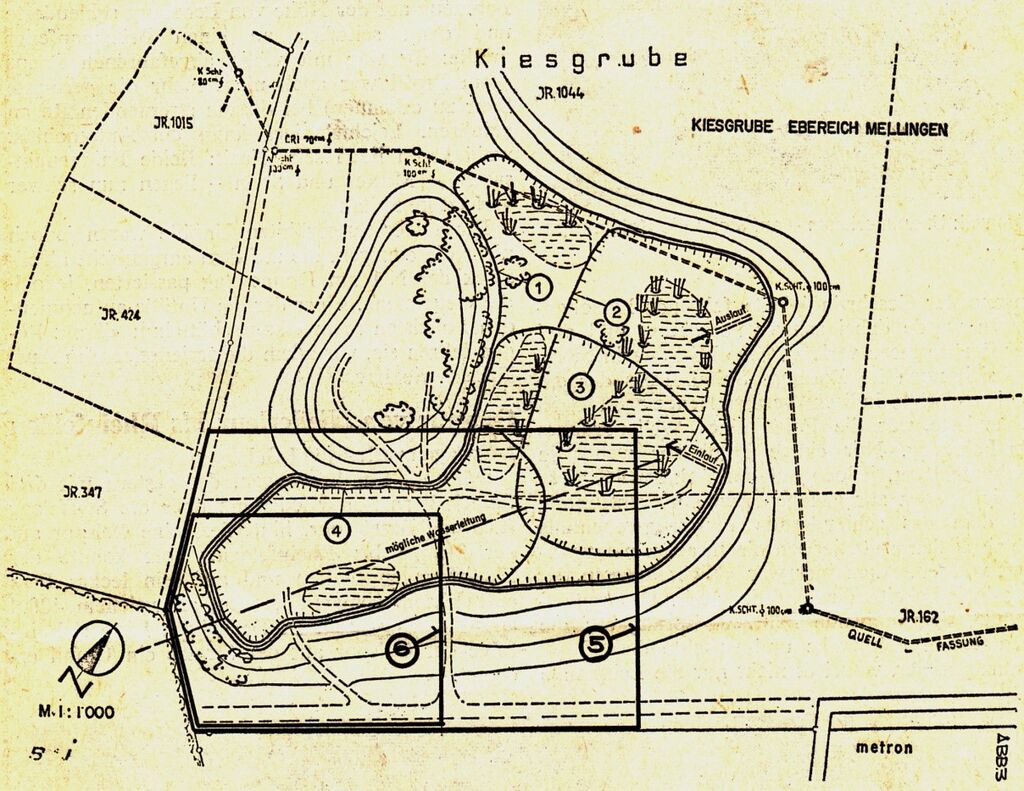 Ein neues Naturreservat in Mellingen? Ein Teil der im Zudecken begriffenen Kiesgrube an der Stetterstrasse ist dank günstiger Umstände zu einem Standort interessanter biologischer Lebensgemeinschaften geworden. Die verschiedenen kleineren und grösseren Tümpel und Teiche mit mannigfacher Ufer- und Wasservegetation – Lebensbereiche von seltenen Amphibien und Vögeln – sollten nach der Meinung verschiedener Sachverständiger in ihrer heutigen Art und Ausgestaltung erhalten bleiben. Naturschutz, Regionalplanung und Gemeinde bemühen sich, mit dem Grundeigentümer eine Regelung zu finden. Ob dies gelingt, hängt von rechtlichen und finanziellen Fragen.