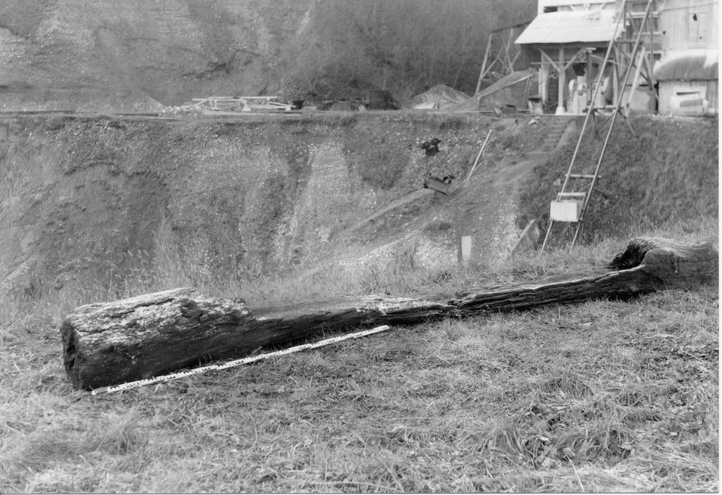 Dieser Einbaum (Schiff, das man durch Aushöhlen eines Baums schuf) wurde beim Kiesabbau gefunden. Leider ist nicht bekannt, ob dieser Einbaum noch erhalten ist. Auch wurde unseres Wissens nie dessen Alter bestimmt. Einbäume können mehrere 1000 Jahre alt sein.
