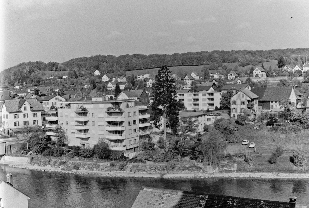 Blick von seiner Liegenschaft am Sonnenweg aufs Städtchen, Herbst 1966: Datierung aufgrund von Nr. 1, wobei die Bäume auf Nr. 1 bereits blühen, auf Nr. 3 aber noch Obst tragen. Der Neubau anstelle der Villa Rohr am Zentralplatz ist noch im Rohbau.