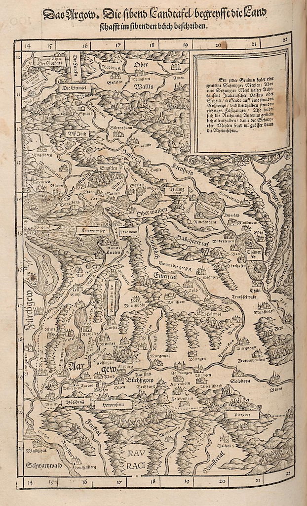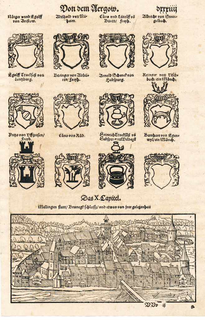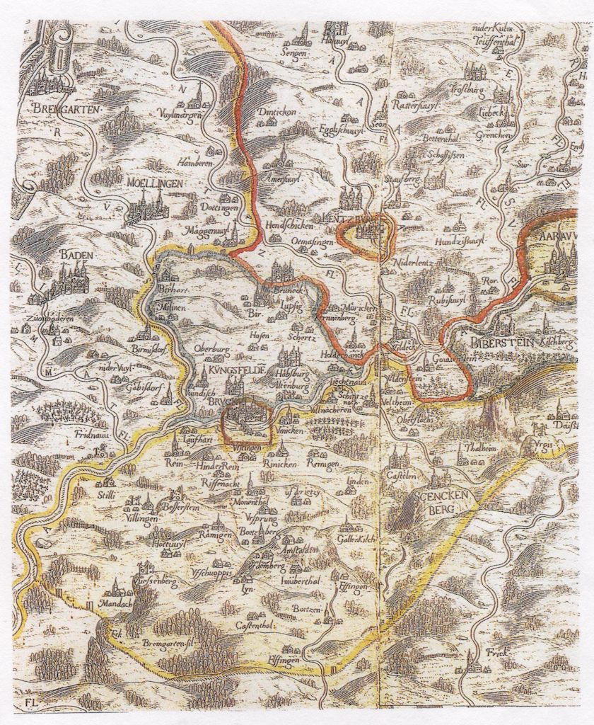 Es ist dies die älteste bekannte Schweizerkarte, die der Zürcher Arzt Konrad Türst (ca. 1450-1503) als Aquarell und in Tusche geschaffen hat. Auf dieser Karte ist auch Mellingen eingezeichnet: s. den Ausschnitt dieser Karte unter Bild-Nr. 39900.
