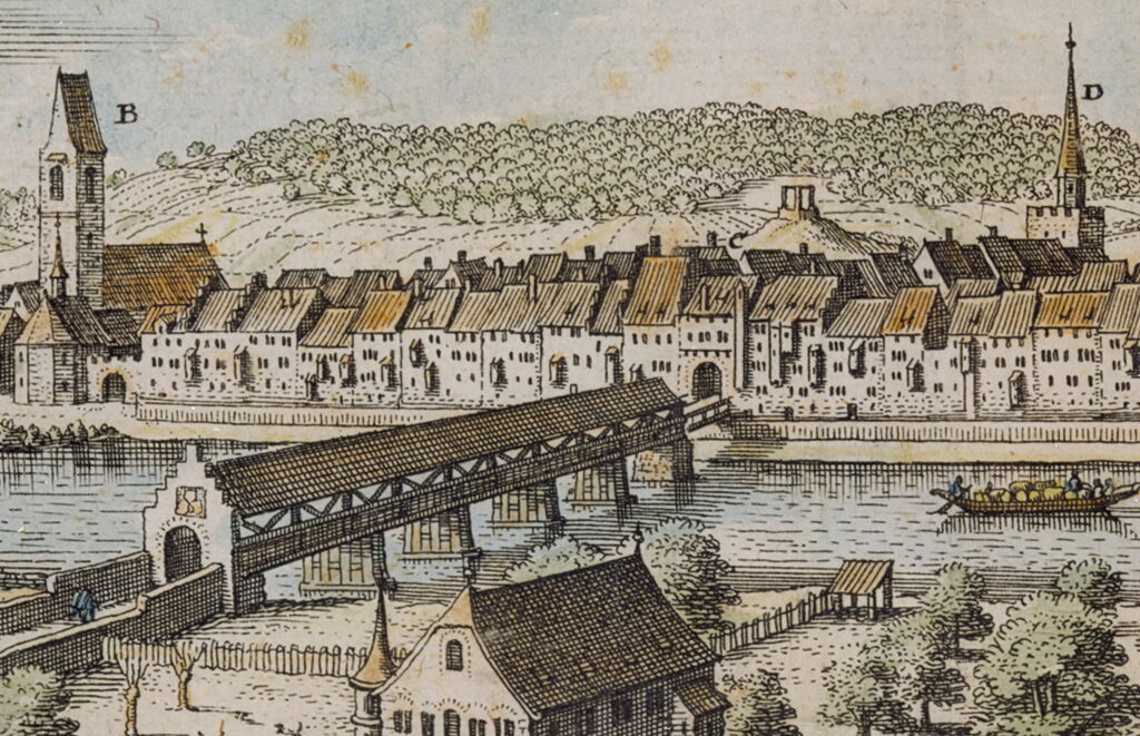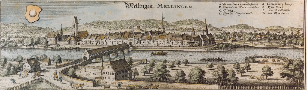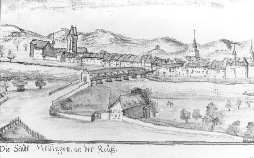 Angaben der Zentralbibliothek Zürich: [Prospect von der Statt Mellingen] Kuhn, Jakob [Schweiz], [zwischen 1770 und 1790] Zentralbibliothek Zürich Signatur: STF Kuhn, Jakob XVIII, 106