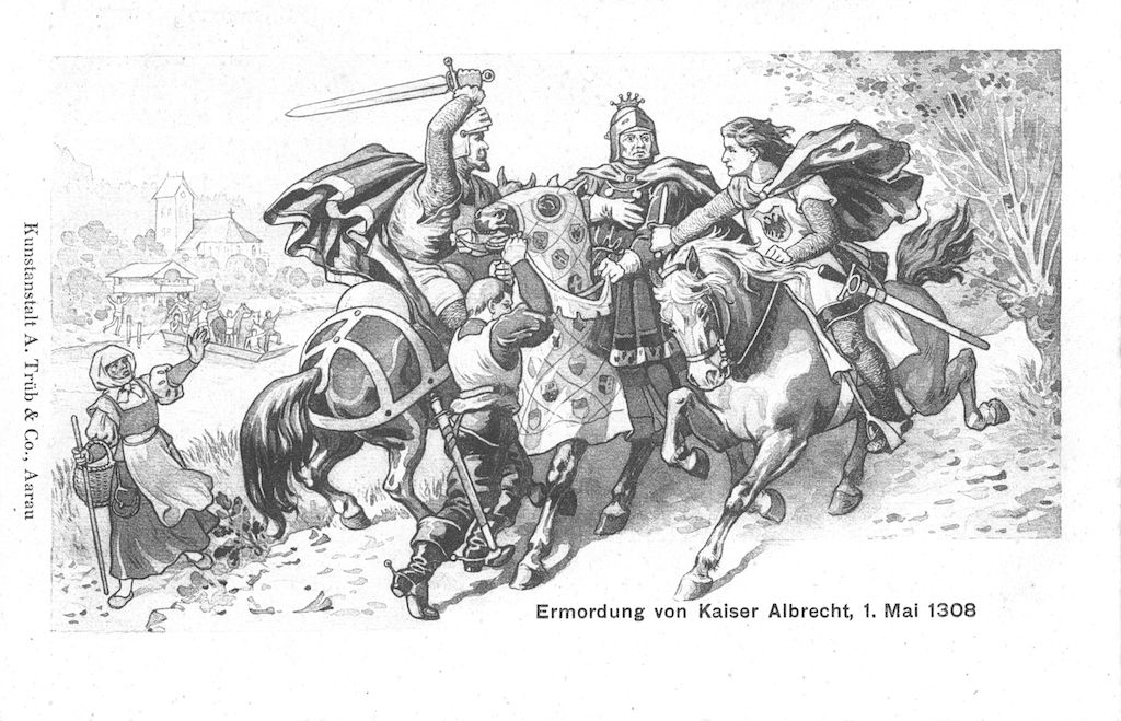 Ermordung von Herzog Albrecht am 1. Mai 1308 durch seinen Neffen Johannes bei Königsfelden.