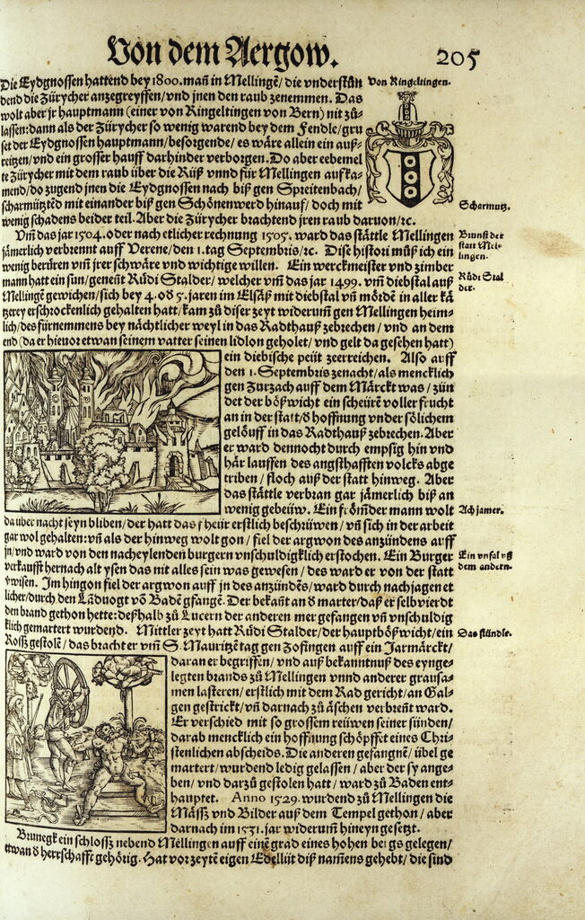 Text über dem Bild: "Das Hanns von Rechberg und mit Jm die von Zürich und ander Mellingen wolten ingenomen haben"