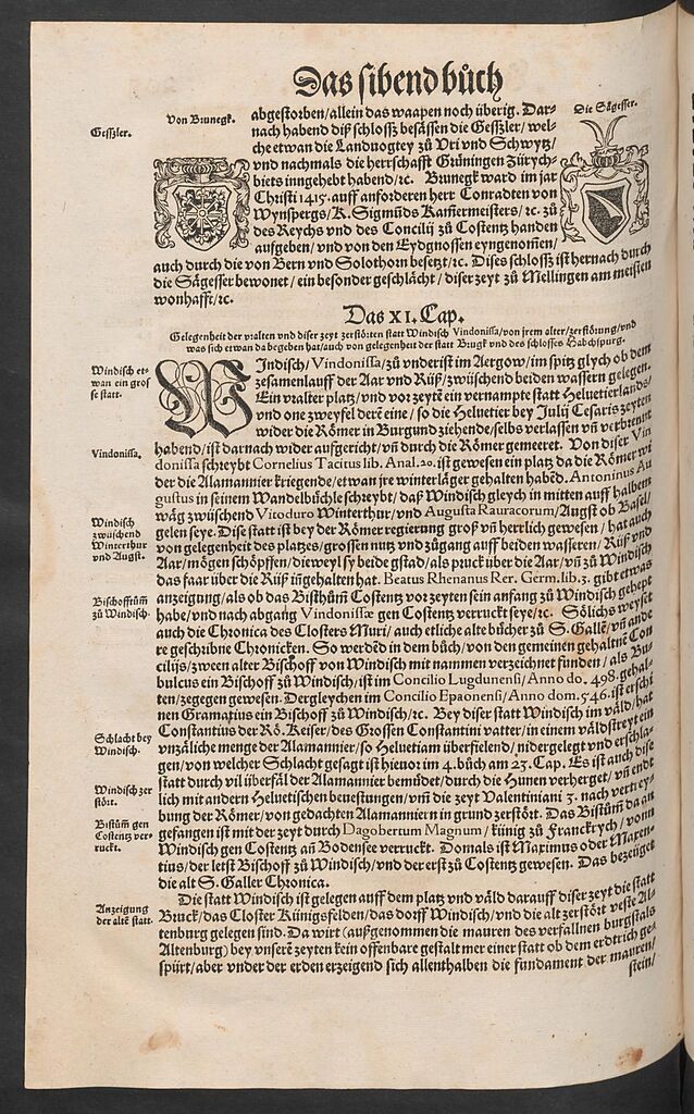 Originaltitel der Stumpfchronik "Gemeiner loblicher Eydgnoschaft ... Beschreybung, Standort 7. Buch, Blatt 204v.