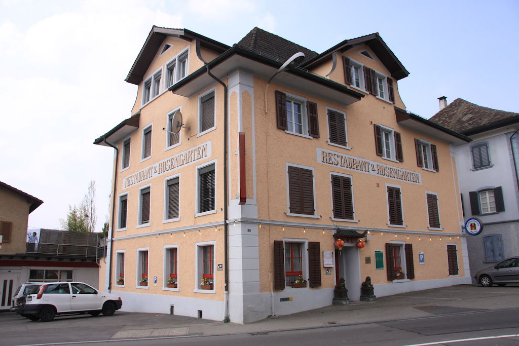 1642 Schlösschen Hünegg, nachmals Restaurant Rosengarten, jetzt (2020) Restaurant Chang Cheng, Bahnhofstrasse 9