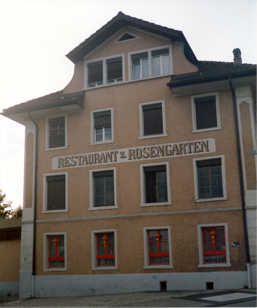 Laut Brandkatastereintrag gehörte der 'Rosengarten' 1928 einem Landwirt Ernst Gauch und einem Maurermeister Jakob Spiler aus Niederwil" [- dieser baute Dach und Fassade vermutlich 1929 umfassend um -] (...) "Der östlich gelegene Rosengarten aus dem späten 19. Jh. musste nach 1940 Parkplätzen weichen. [Im November 1968 ging der "Rosengarten" von Familie Niklaus Wigger-Portmann an Aldo Signorelli-Krug über. Die Wirtschaft wurde aber von einer Familie Villiger geführt, welche diese im März 1972 an die Familie Zimmermann weitergab.1998 wurde das Restaurant in Chang Cheng umbenannt, nachdem es bereits seit 1990 unter dem Namen "Shen-Tin Rosengarten" ein Chinarestaurant war.]