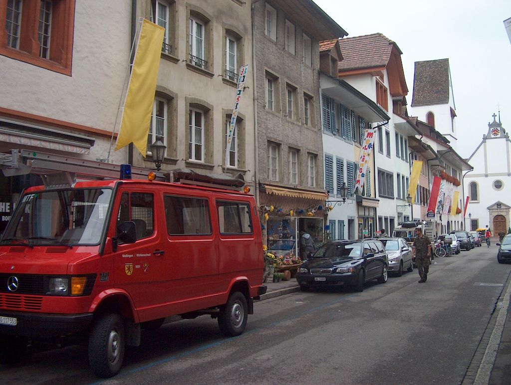 Liegenschaften, die die Hauptlast des Unwetters zu tragen hatten und noch haben. Das Wohnhaus der Familie Frey wurde geflutet und ganze Teile des grossen Holzlagers der Sägerei wurden von den Wassermassen mitgerissen. In den Kellern der Häuser an der Bruggerstrasse stand der Schlamm Zentimeter hoch. Ganz böse hat es auch die Bäckerei Vollenweider getroffen. Die im Keller liegende Backstube stand knietief unter Wasser und erst als sie von Angehörigen des Zivilschutzes vom Schlamm befreit worden war, wurden die enormen Schäden an Maschinen und Einrichtungen sichtbar. Zu allem Überfluss waren grosse Teile der Altstadt ohne Strom, was die noch während des Hochwassers begonnenen Rettungs- und Aufräumarbeiten zusätzlich erschwerte.