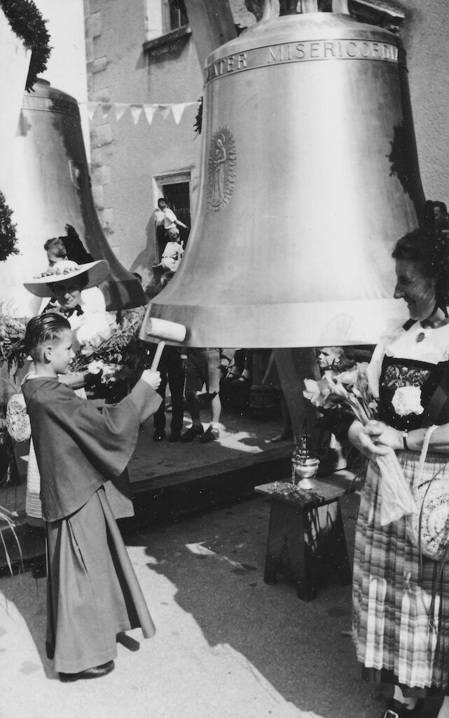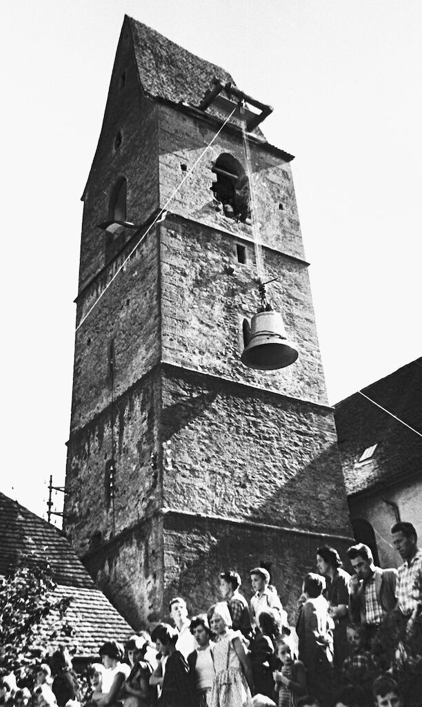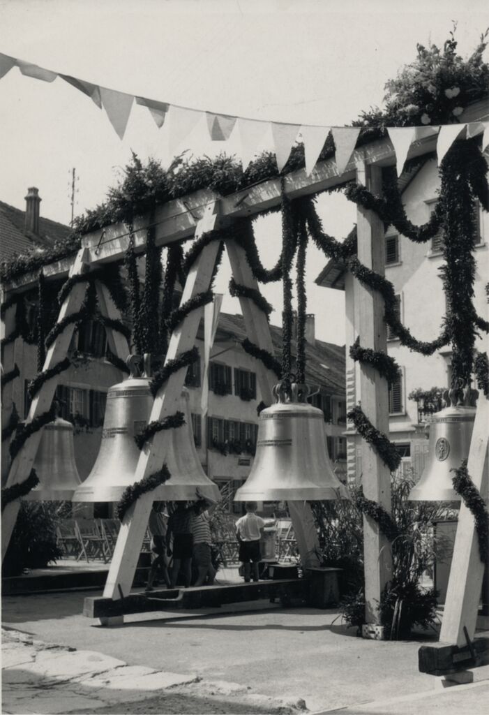 Kirchenglocken hatten seit dem Mittelalter eine grosse Bedeutung - auch in Mellingen. Sie riefen zu den Gottesdiensten und zum Gebet auf. Die Glocken verkündeten die Uhrzeit und forderten bei einem Brand die Feuerwehrleute zu raschem Handeln auf. Über die Mellinger Kirchenglocken in früherer Zeit ist nur wenig bekannt. Doch der mächtige spätmittelalterliche Glockenturm weist darauf hin, dass hier stets ein beachtliches Geläut hing. 1637 und 1641 wurden sechs neue Glocken gegossen, die bis 1959 ihren Dienst taten. Damals entstand in der Glockengiesserei Rüetschi in Aarau das heutige Geläut. Dieses wurde am 29. August 1959 geweiht und zwei Tage später von der Schuljugend in den Glockenturm gezogen. Die fünf Glocken haben ein Gewicht von beinahe neun Tonnen. Es ist eines der imposantesten Geläute im Aargau.