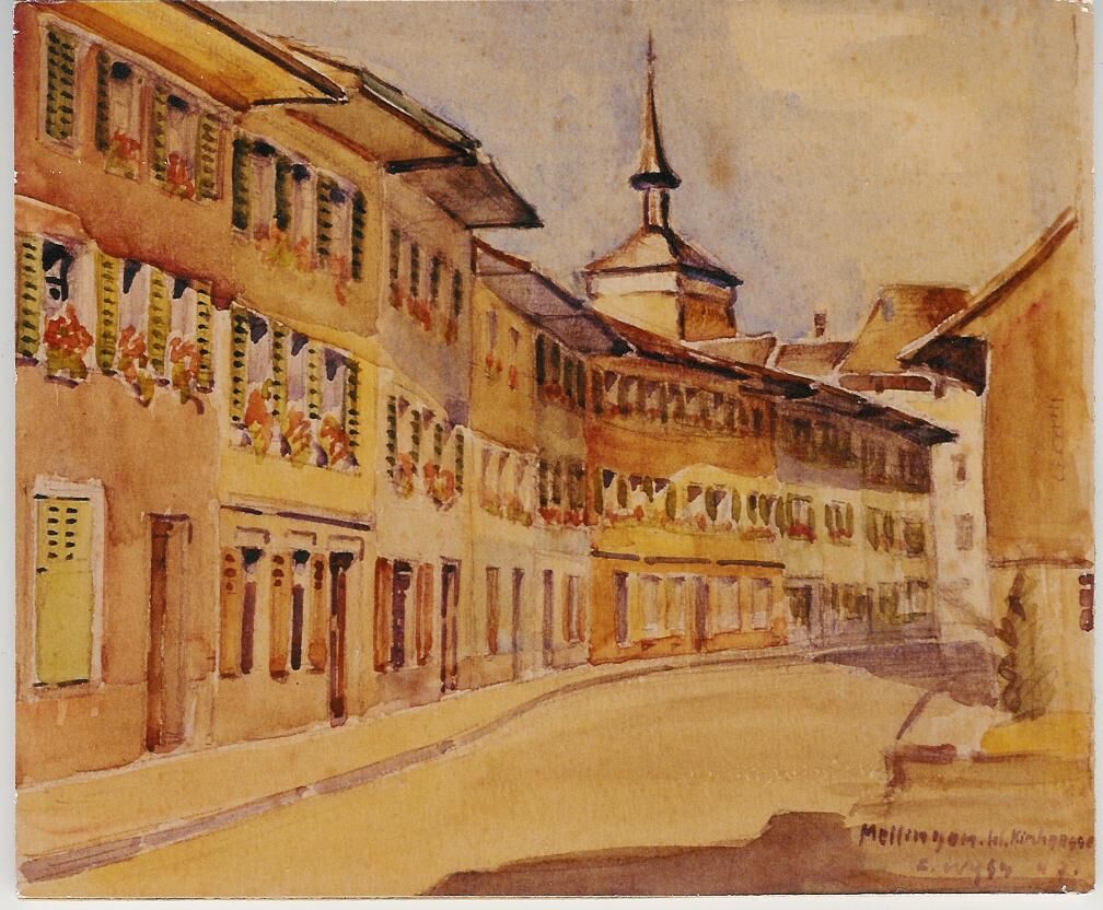 Der leutselige, gesellschaftsfreudige Maler mit seinem breitkrempligen Hut lebte, kurz nach dem Ende des zweiten Weltkrieges, für längere Zeit in Mellingen. Seine Farbbilder von Sehenswürdigkeiten und idyllischen Ecken unseres Städtchens fanden bei der Bevölkerung Gefallen und regen Zuspruch.