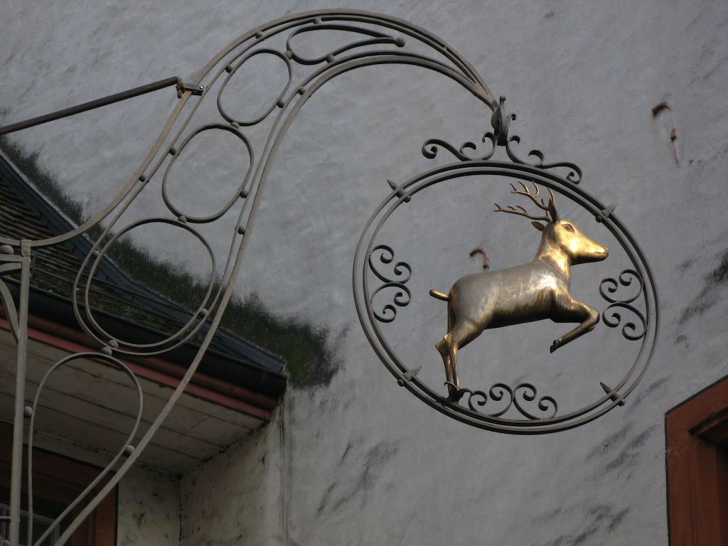 Der Gasthof zum Hirschen mit dem Schild des schreitenden Hirschs.
