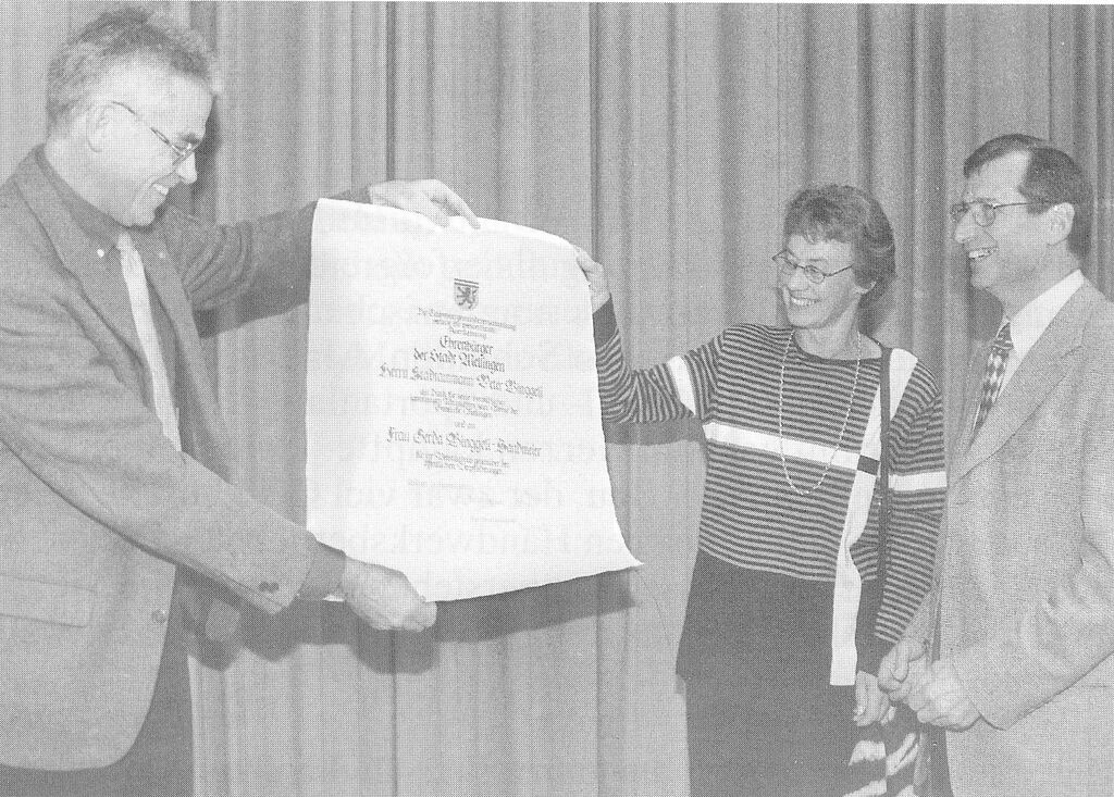 Dass dieser grosse Einsatz für Mellingen nie möglich gewesen wäre ohne das wirkliche Einverständnis seiner Frau Gerda, ist keine Floskel, sondern einfach Tatsache. Sie hat ihn nicht nur viele Abende entbehren müssen, sie hat ihn wirklich in seinem Amt begleitet. Deshalb gebührt auch Gerda Binggeli ein grosser Dank für die vergangenen zwanzig Jahre. So haben beide auf ihre Weise das Mellinger Ehrenbürgerrecht verdient.