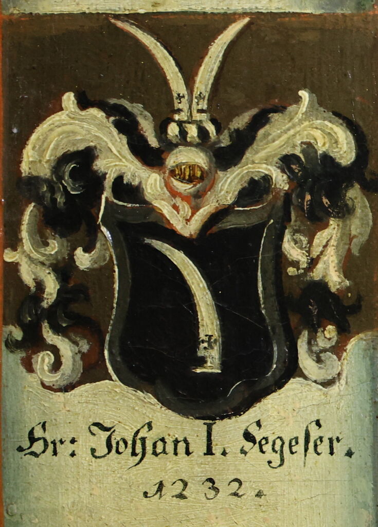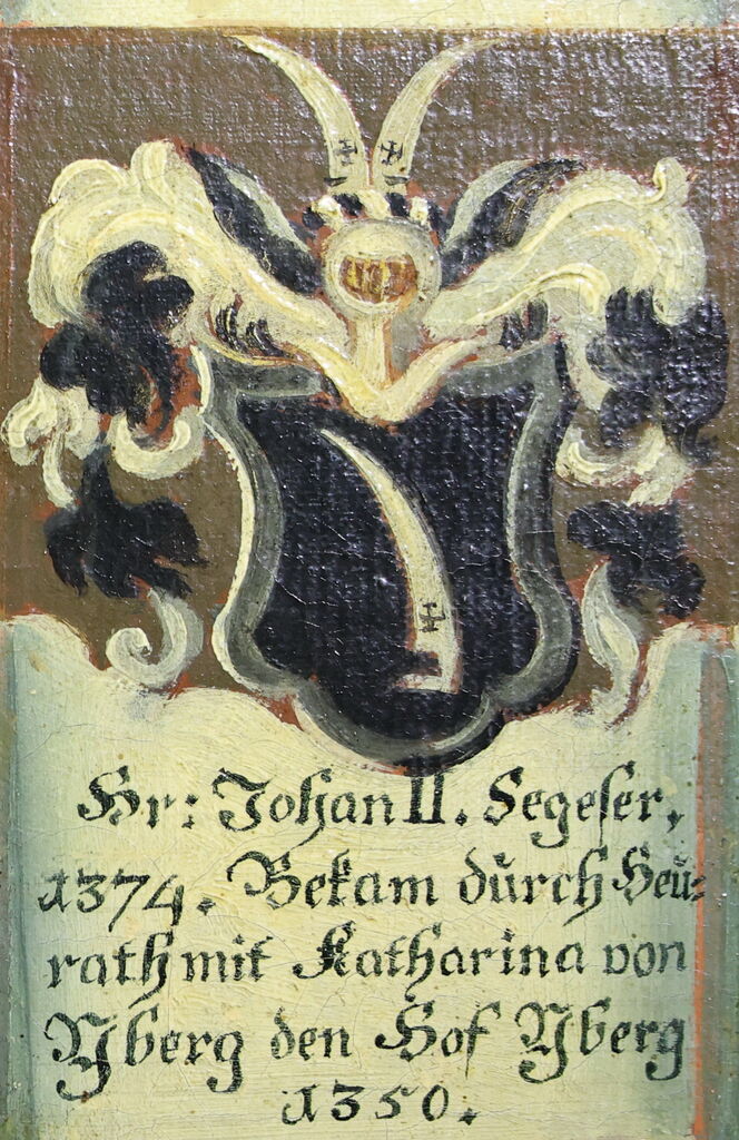 Text: "Hr: Johan II. Segeser,1374. Bekam durch Heurath mit Katharina von Yberg den Hof Yberg 1350."