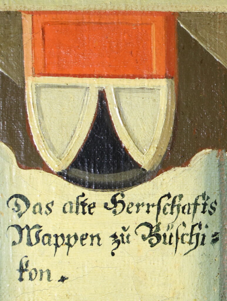 Text: "Das alte Herrschafts Wappen zu Büschikon."