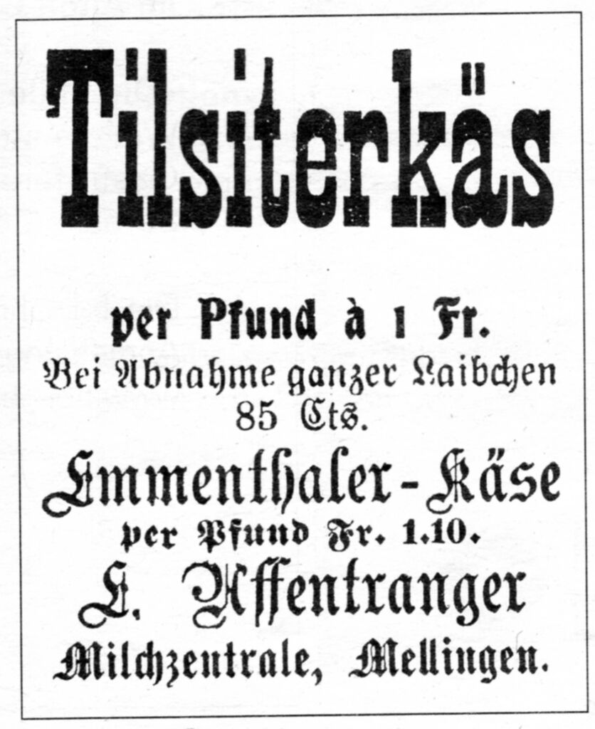Milchcentrale, Käse- Butterhandlung Affentranger.