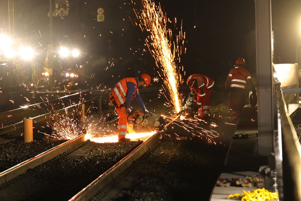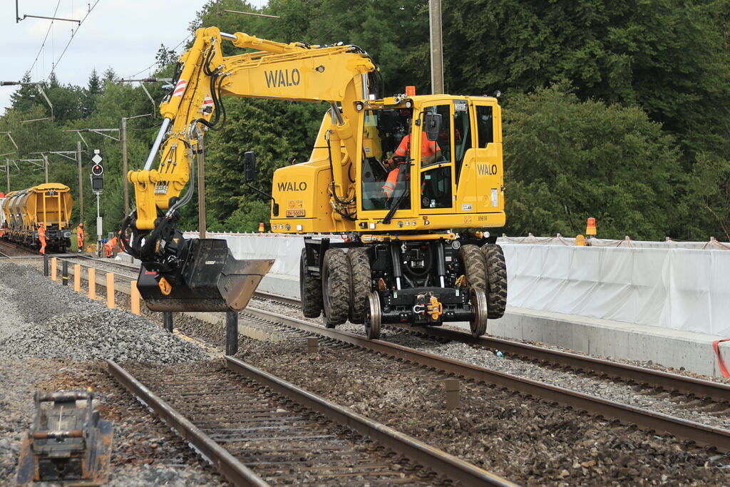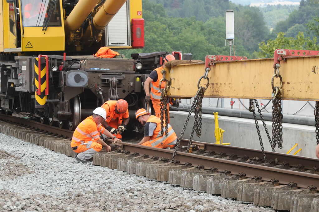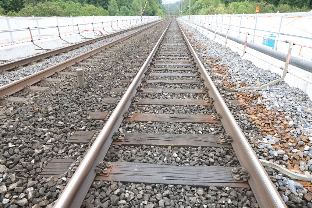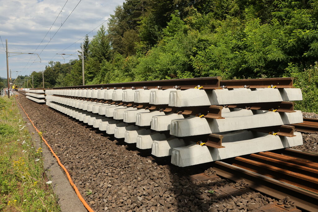 • Ersatz der Holzschwellen durch Betonschwellen und Einbau neuer Schienen,