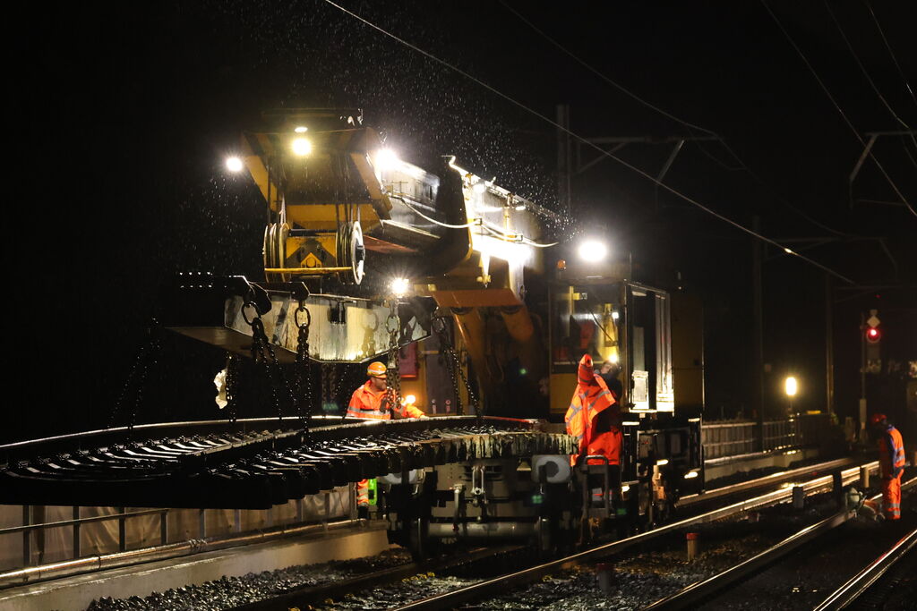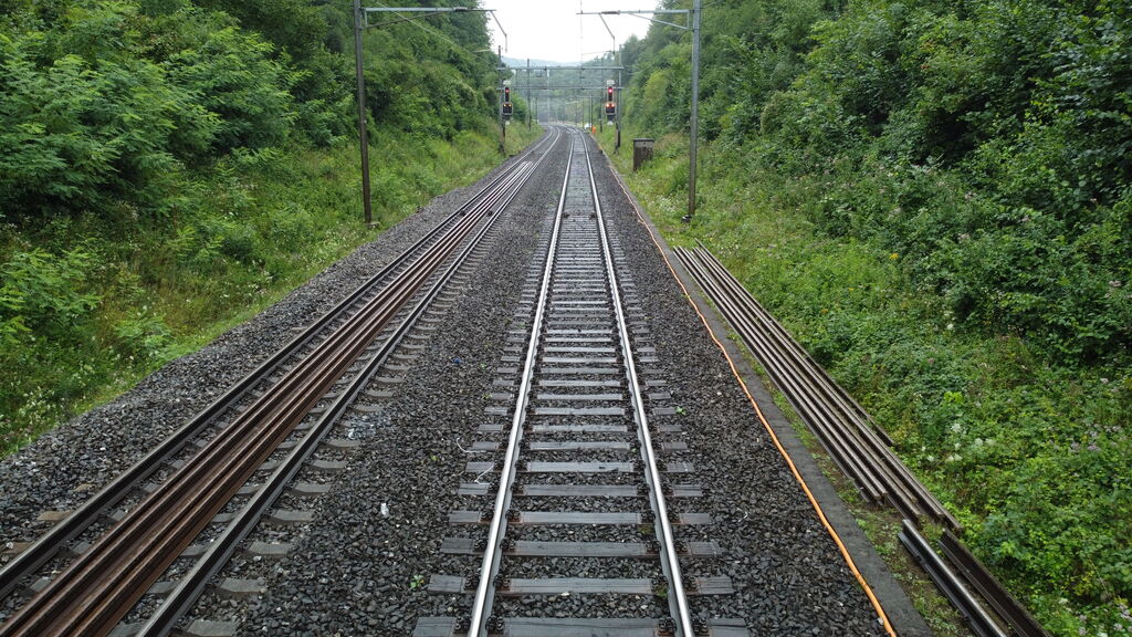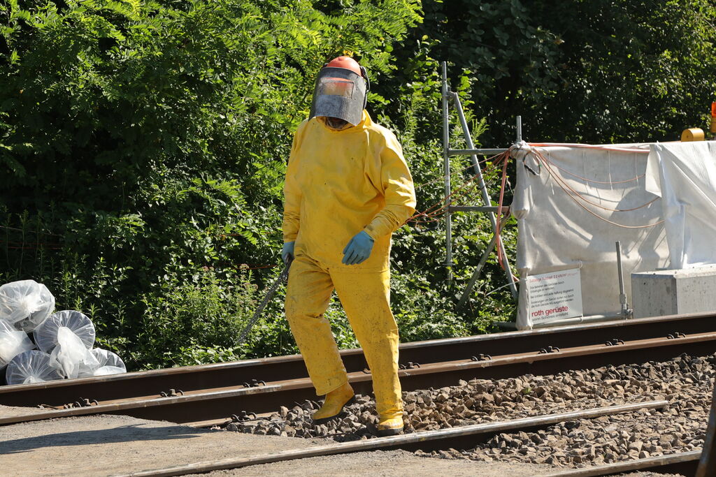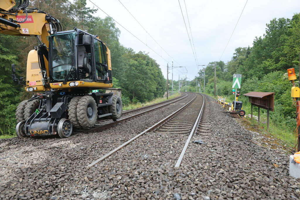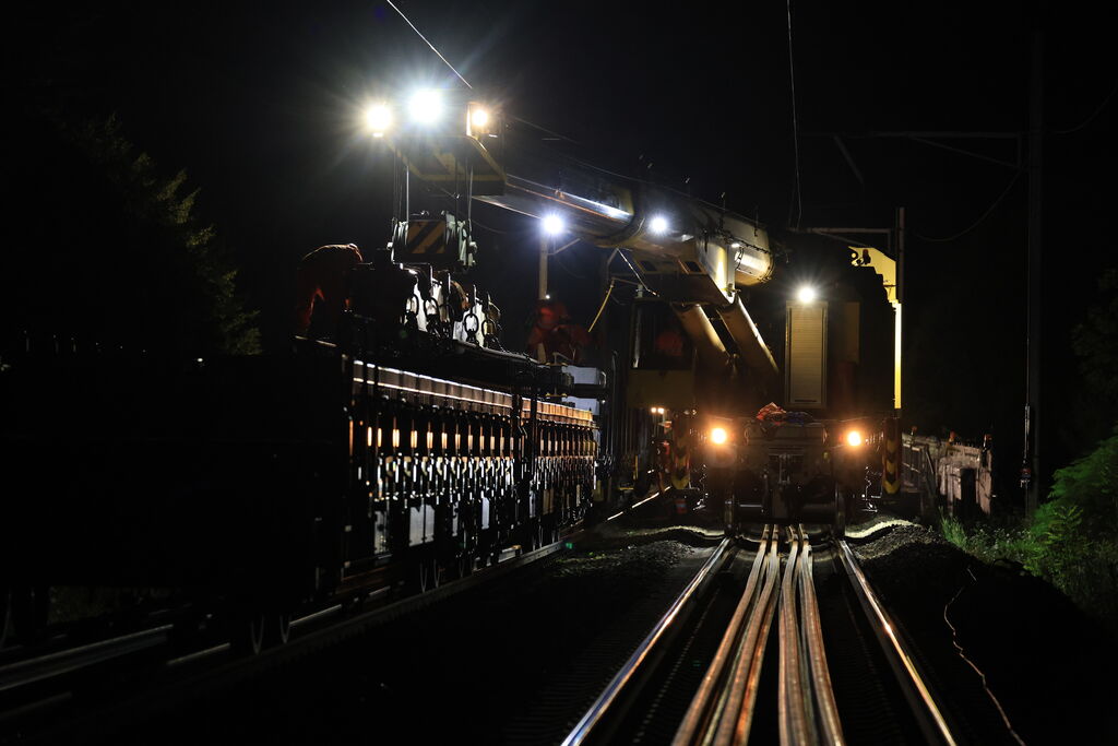 • Ersatz der Holzschwellen durch Betonschwellen und Einbau neuer Schienen,