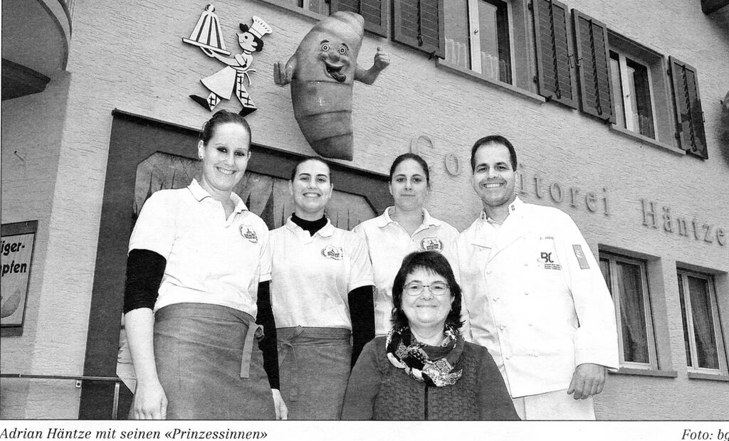 Adrian Häntze (51) ist wie immer auch an diesem Morgen früh aufgestanden. Um halb vier in der Früh stand er in der Backstube und heizte die Öfen ein. Um sechs mussten die frischen Backwaren im Laden bereit sein. Brötchen, Weggli, Gipfeli, helles und dunkles Brot. Er muss selber nachzählen, wie viele Produkte er mit seinen Frauen, die er seine «Prinzessinnen» nennt, jeden Tag frisch produziert. Neben zehn bis 15 Brotsorten sind es nochmals so viele Bürli, Gipfeli, Weggli, Maisbrötli, Schoggigipfel, Nussgipfel, Mandelgipfel, Berliner und ... «Ach», sagt Adrian Häntze, «unser Sortiment ist überschaubar. Andere produzieren viel mehr.» Er müsse das Sortiment nach der Betriebsgrösse ausrichten, und die sei nun mal beschränkt. Deshalb habe er aus der Not eine Tugend gemacht. «Wir müssen das, was wir machen, gut machen.» Er habe schon lange aufgehört, die ganze Kunst seines Könnens in den Laden zu bringen. Das würde schlicht nicht rentieren. Deshalb das Motto: «Wir machen das Einfache gut.»