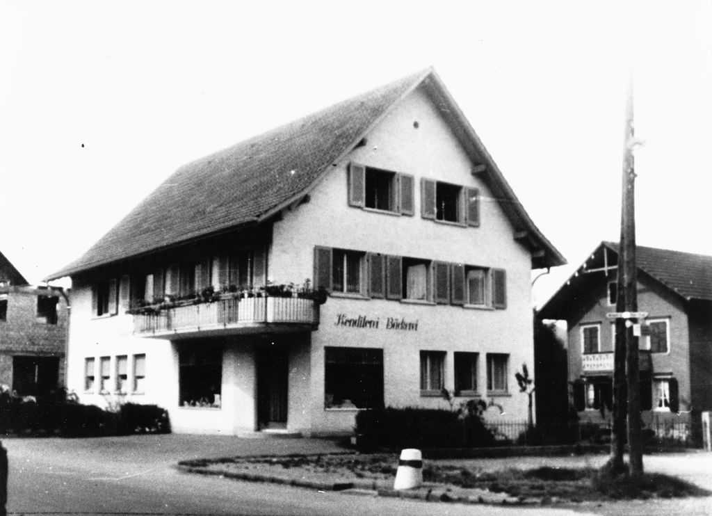 Vermutlich eröffnete Bäcker Erwin Graber 1938 an der Hauptgasse 15 eine Bäckerei (Bild-Nr. 04012.2). 1947 zog er aus der Altstadt aus und eröffnete an der Gabelung Lenzburgerstrasse/Büblikerweg ein Wohnhaus mit Bäckerei.