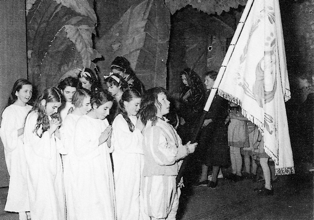 Als erstes mag sich unsere Berichterstatterin an ein Bruderklausenspiel erinnern, das ım Kronensaal aufgeführt wurde und an dem sie als Schulkind selber mitwirken durfte. Es war noch kein Theaterspiel ım eigentlichen Sınn, sondern es wurden verschiedene Szenen aus dem Leben von Bruder Klaus durch Erwachsene und Kinder dargestellt, ohne dass dazu gesprochen worden wäre. Währenddessen sang der Chor des Arbeiter- und Arbeiterinnenvereins passende Lieder. Doch bald wurden diese Bilder lebendig, und Pfarrer Bopp begründete, v. a. als dann das Vereinshaus bezogen werden konnte, eine eigentliche Theatertradition, die weitherum Beachtung fand. Beispielsweise führte er mit den Kindern das «Lied von Bernadette» auf. Wenn auch manche nur als Statisten mitwirken konnten, war es - wie man heute sagen würde — für die Jugendlichen eın Ereignis, kreativ tätig sein zu dürfen. Und es war ja nicht nur Spiel! Pfarrer Bopp verlangte von allen Laienschauspielern eine deutliche Aussprache.