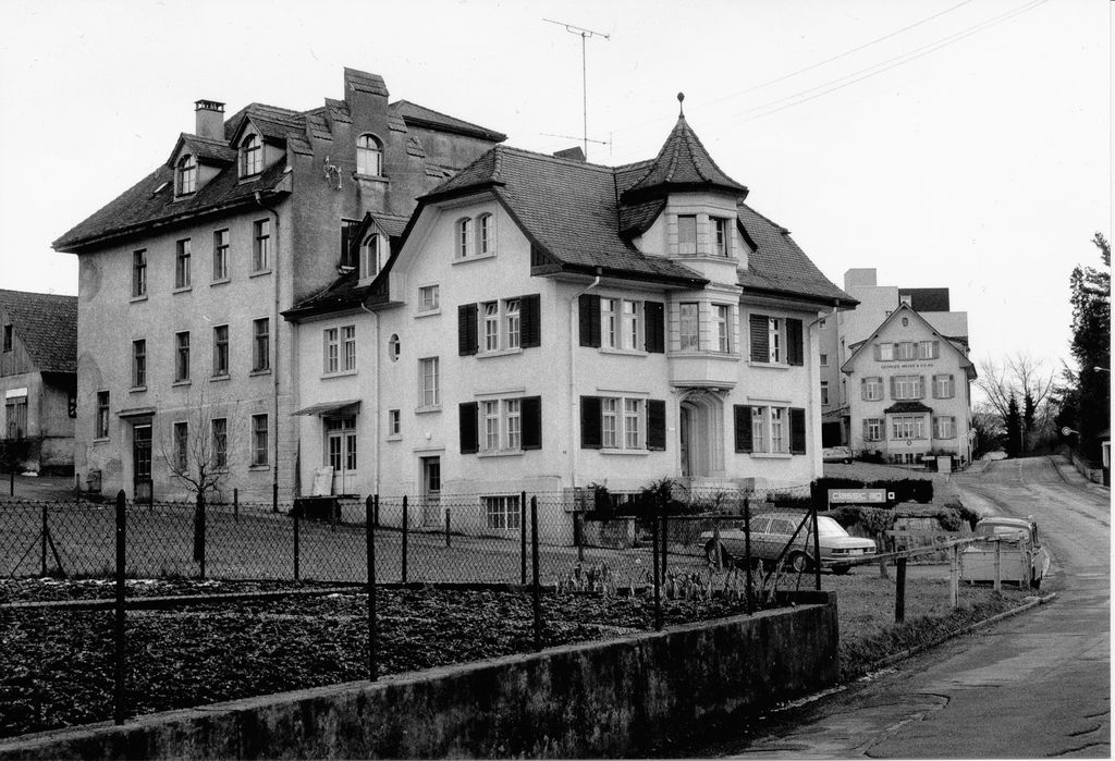 Laut Brandkataster entstand zuerst ein massiv gemauertes Fabrikgebäude mit Vorbau und Veloschopf. Hinter dem Fabrikgebäude folgte noch 1923 eine zur Strohmanufaktur gehörende Mechanische Werkstätte aus Stein, "Rieg" und Eternit. 1925 war auch der mit der Rückseite an die Fabrik angebaute zweigeschossige Kopfbau an der Stetterstrasse fertiggestellt. Das typologisch als Wohnhaus gestaltete "Bureaugebäude hat 2 Verbindungsbauten".