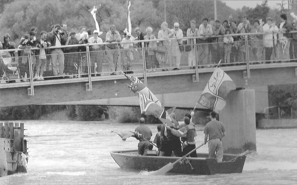 Eine vermeintlich letzte grosse Belastungsprobe musste die alte Soldatenbrücke am Dienstag, 4. April 1999 über sich ergehen lassen, hatte sie doch den ganzen Tag über fast ständig 60 bis 70 Zuschauer zu tragen, die bei der Montage des neuen Städtlistegs dabei sein wollten.