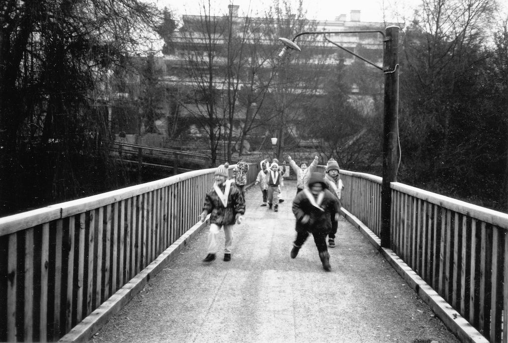 Wie es zu dieser Brücke kam, liest sich fast wie ein Märchen. Die Gemeinde Mellingen will das 1897 gebaute Schulhaus an der Bahnhofstrasse gründlich renovieren. Dazu müssen die dortigen Schüler eine Zeitlang ausquartiert werden. Die meisten von ihnen wohnen auf der rechten Reussseite und müssen zum neuen Schulort in der Kleinen Kreuzzelg die Reuss überqueren. Täglich fahren über 13 000 Autos und Lastwagen durch das Brückentor mit den engen Gehsteigen und wären eine Gefahr für diese Schüler.