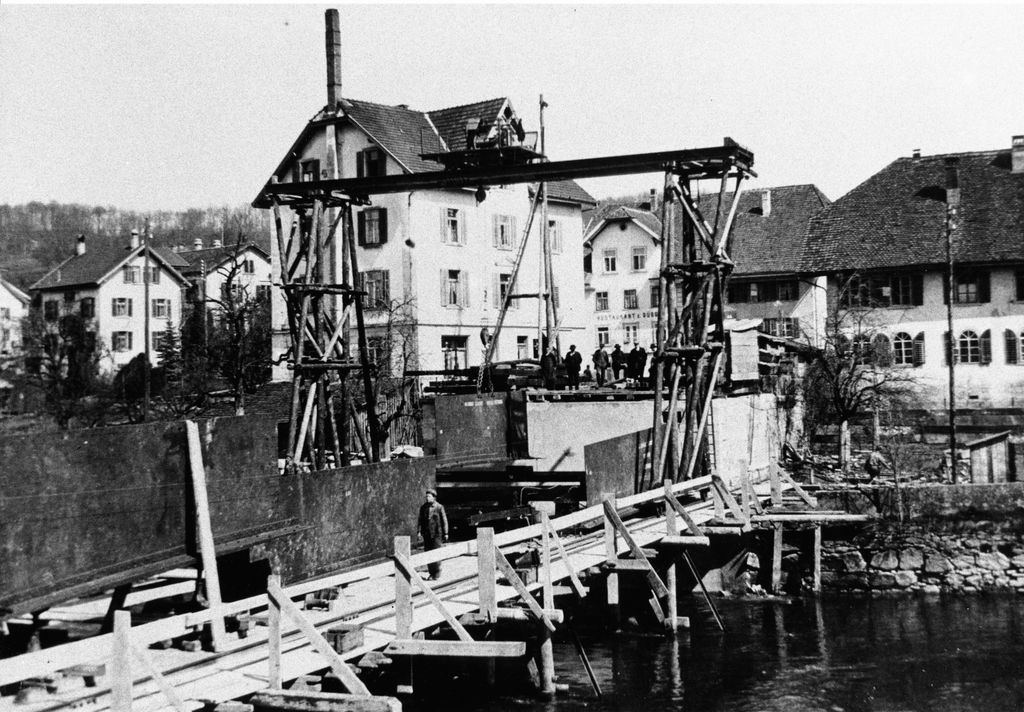 Am 10. März 1928 wurde mit der Montage der neuen Eisenbrücke begonnen.