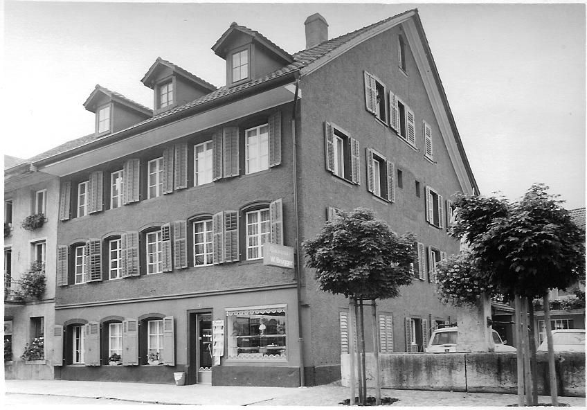 Bis Ende 1918 Stoffladen der Witwe Hirt-Wassmer, 1919 führte C. Solay das Lokal als Gemischtwarenladen weiter, später Laden von Frau Schibli.