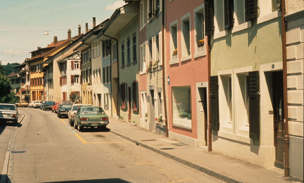 Das Bild wurde vor 1983 aufgenommen. Die dannzumal montierten schmiedeeisernen Altstadtleuchten sind noch nicht an den Hausfassaden montiert.