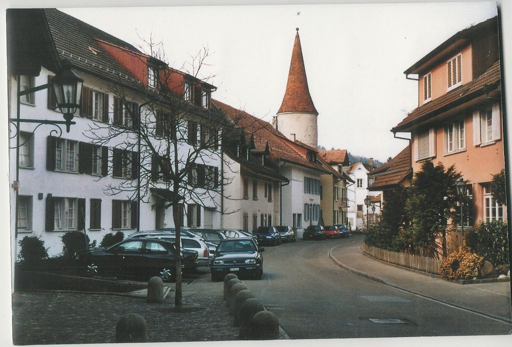 "Das Gebäude mit den Schiess-Scharten wurde im Jahre 1948 von der Gemeinde erworben, um dessen Abbruch zu verhindern. Im geschlossenen Stadtbild wäre eine weitere Lücke entstanden.