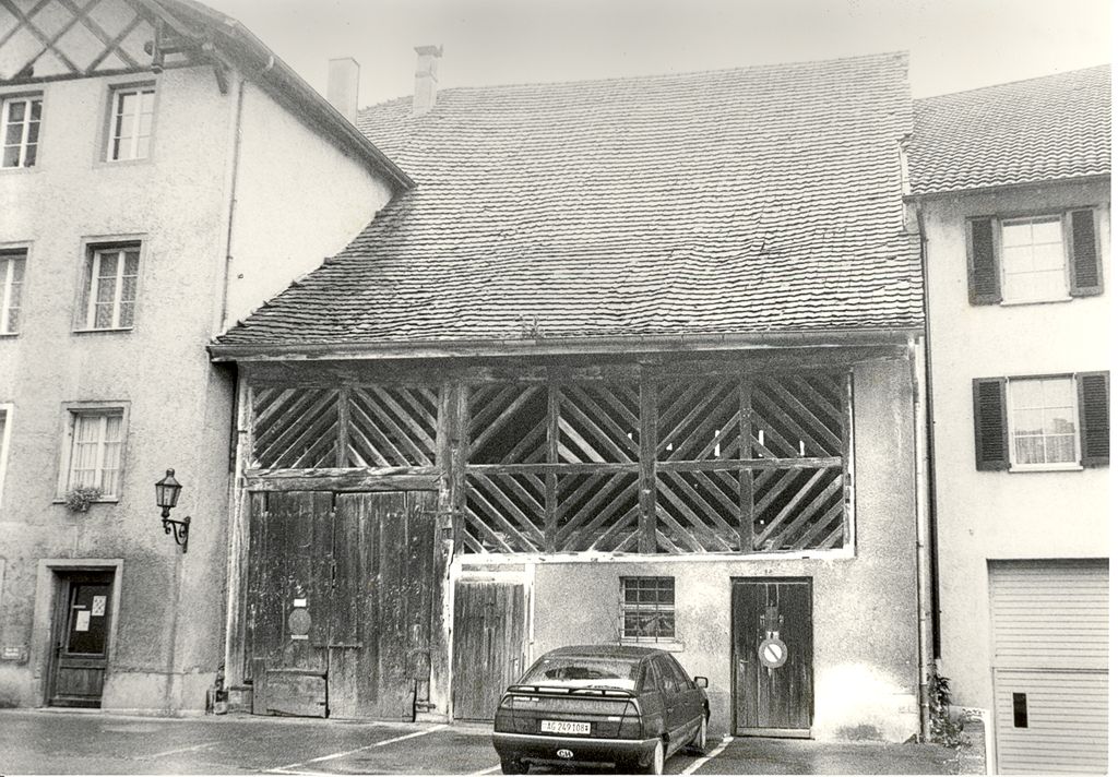 Zur Zeit des grossen Bau- Umbau- und Renovationsbooms in der Scheunengasse war auch das Haus Nr. 11 von einer rigorosen Umgestaltung betroffen. Das Gebäude mit den originellen Riegelfeldern (ähnlich wie bei der Bibliothek und dem Museum) und dem prächtigen Scheunentor diente einst der Landwirtschaft. Leider musste das prächtige architektonische Bild einer nüchternen Neugestaltung weichen. Das Gebäude dient heute nur noch als Wohnhaus.