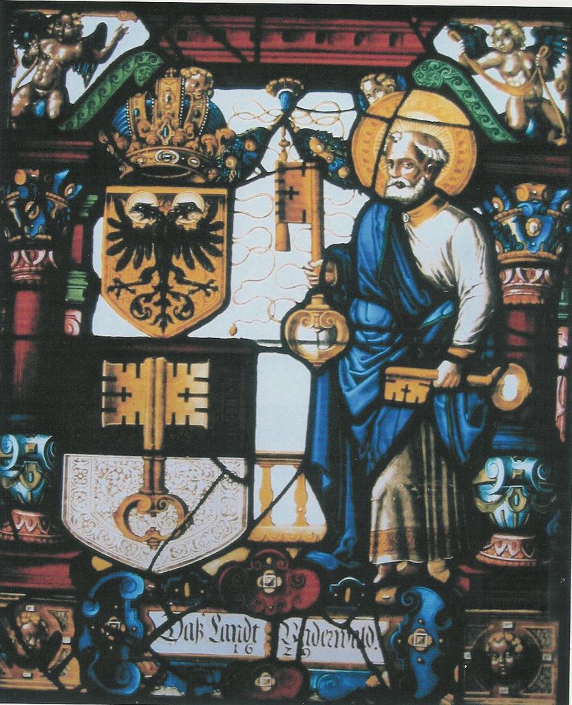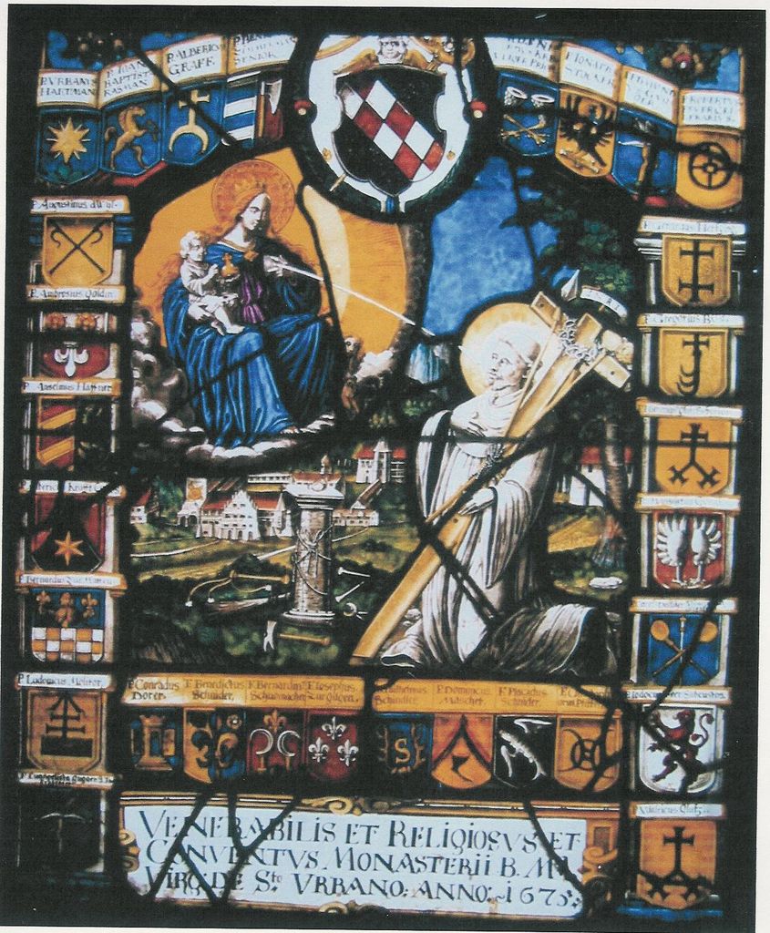 Keine andere Kirche im Aargau birgt einen derart reichen Zyklus an Kabinettscheiben wie die Pfarrkirche Mellingen. Bedeutend mehr Kabinettscheiben sehen wir allerdings in den Kreuzgängen der Klöster Muri und Wettingen - Kunstwerke, die allerdings ausserhalb der Kirche bewundert werden können. Die 15 Glasgemälde stammen noch zum grössten Teil aus der gotischen Kirche, die 1620/1640 in grösserem Umfang restauriert wurde. Zwei Scheiben stiftete der Abt von St. Urban in die neue 1675 erbaute Pfarrkirche. Die Scheibe des Landkapitels Mellingen-Lenzburg aus dem Jahr 1621, die erst seit 1988 im rechten Chorfenster eingelassen wurde, gehörte nach heutigen Erkenntnissen nicht zum ursprünglichen Bestand der Pfarrkirche. Das selbe gilt auch für die in der Sakristei aufbewahrte Scheibe mit dem doppelten Mellingerwappen.