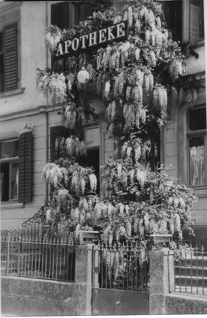 Glyzinien an der Apotheke an der Bahnhofstrasse 10, ca. 1925