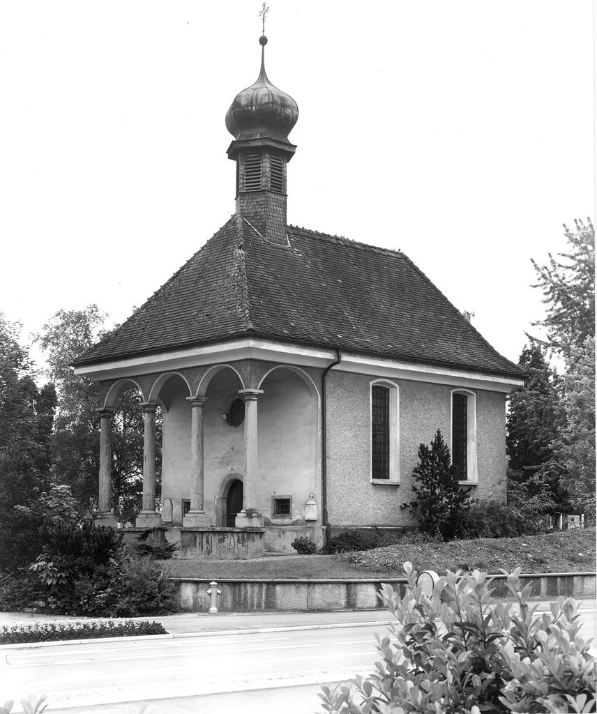 Dessen Grabtafel hing bis 1981 an der Türfront der Kapelle. Bei der Restauration der Kapelle 1981/83 entfernte man diese Grabplatte und ersetzte diese durch eine Metalltafel: Es handelt sich um die dritte Platte von links.