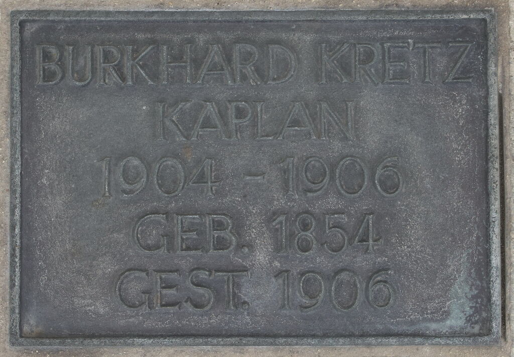 Dessen Grabtafel hing bis 1981 an der Türfront der Kapelle. Bei der Restauration der Kapelle 1981/83 entfernte man diese Grabplatte und ersetzte diese durch eine Metalltafel: es handelt sich um die 2. Platte von links.