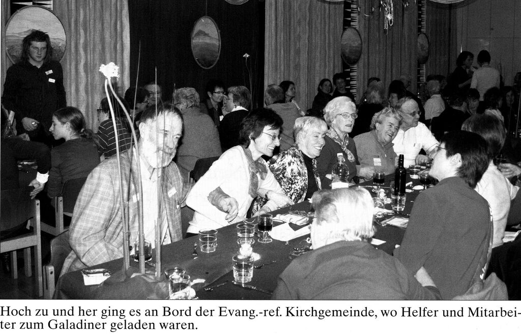 Den Auftakt des Jubiläumsjahres bildete am 1.-5. Januar ein Mitarbeiteressen der besonderen Art im Evang. -ref. Kirchgemeindehaus: «Willkommen an Bord» hiess es in Anlehnung an das Jubiläumsmotto. Aktuelle und langjährige ehemalige Mitarbeitende waren eingeladen, hatten aber an