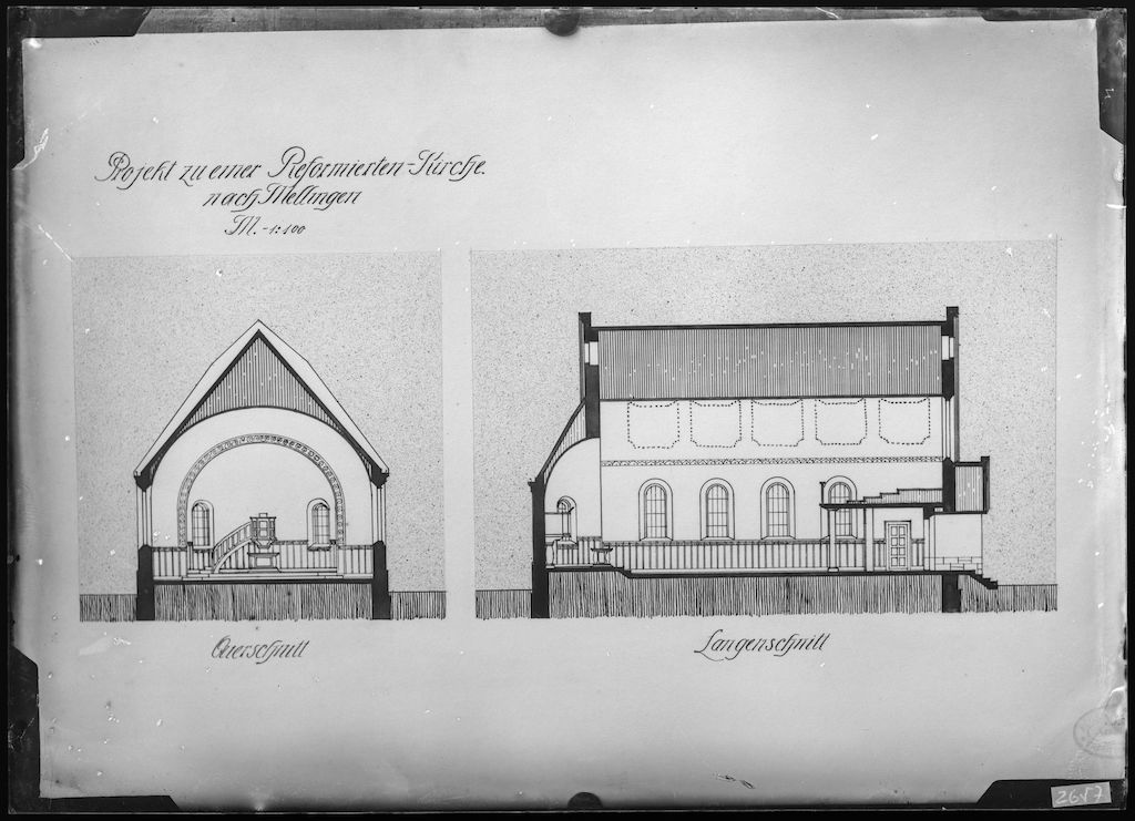Mellingen, Projekt reformierte Kirche, Längs- und Querschnitt