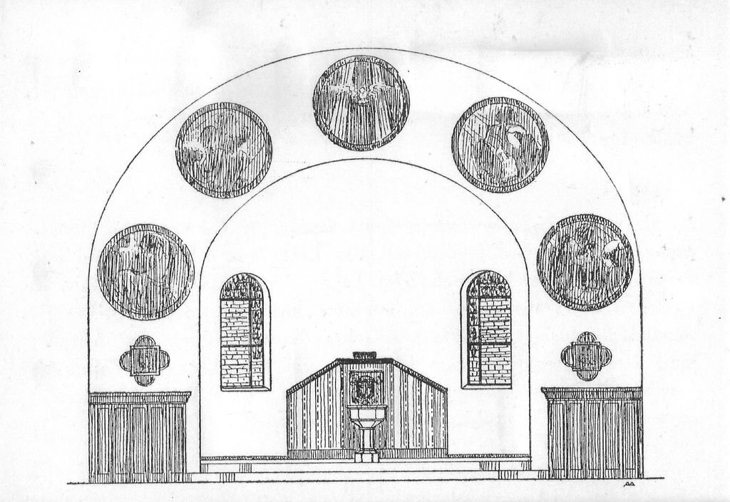 Zwölf Jahre später schmückte der Kunstmaler Büchli aus Lenzburg den Chorbogen mit fünf Tafeln, auf denen die vier Evangelisten und der Heilige Geist dargestellt sind.