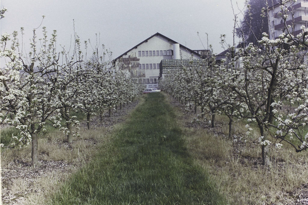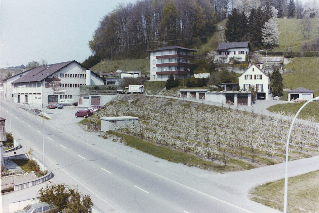 Im Hintergrund das alte Mostereigebäude, als Jean Busslinger noch Inhaber der Firma war.
