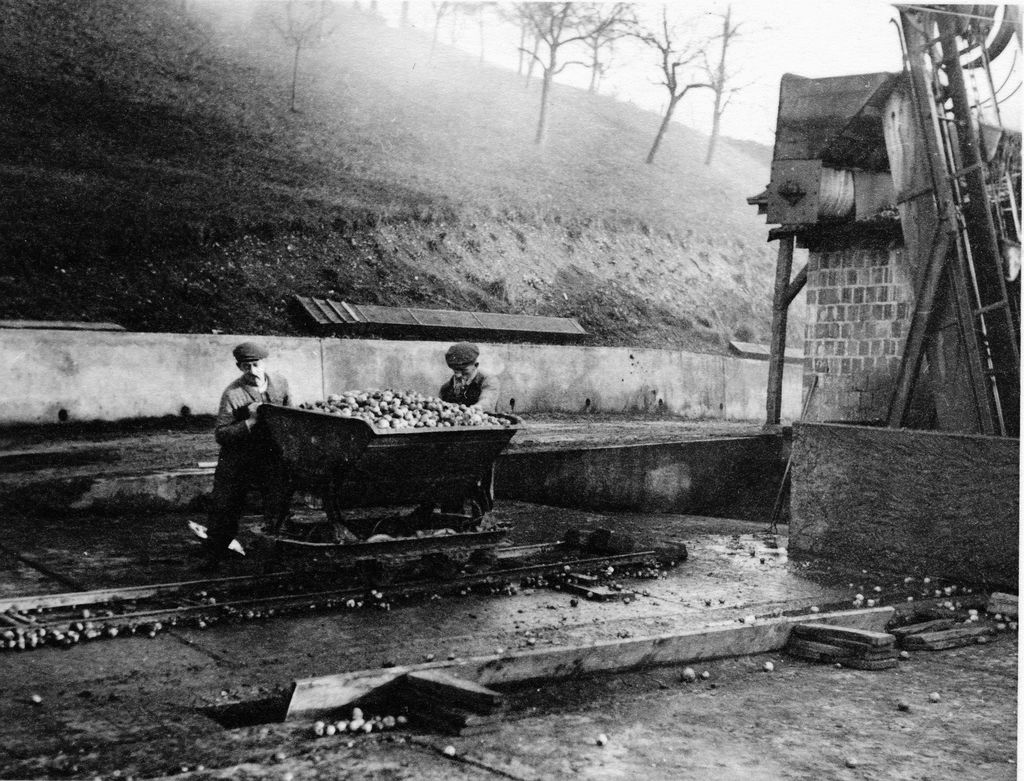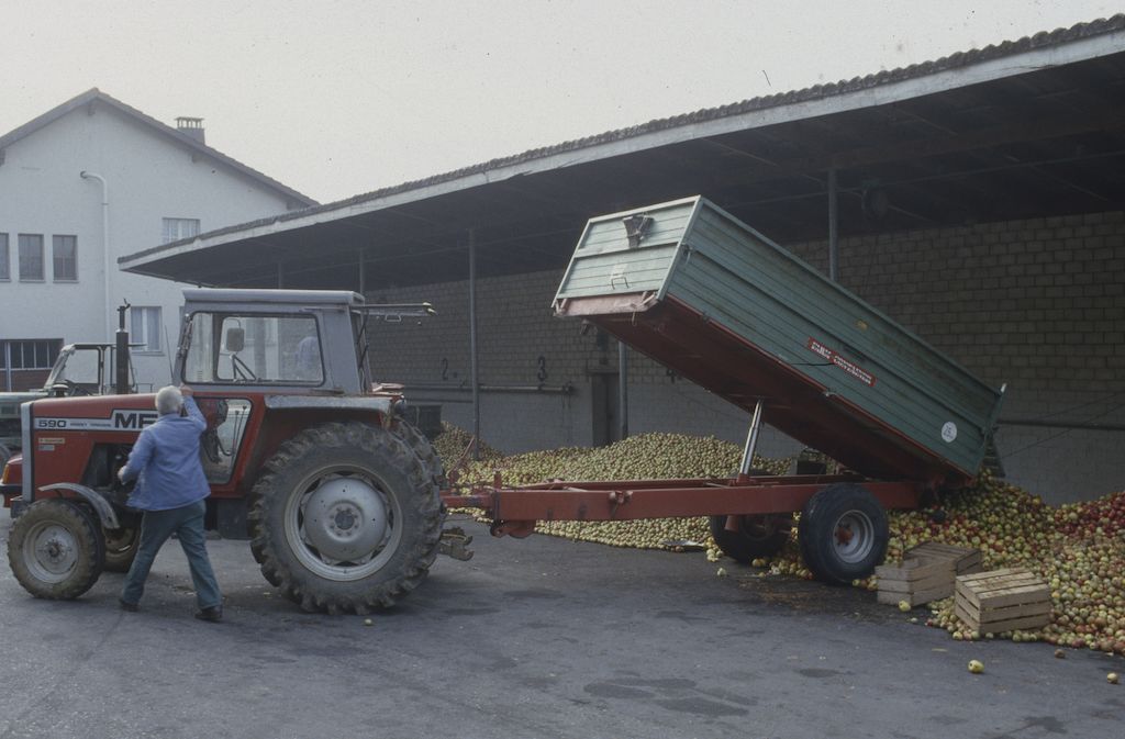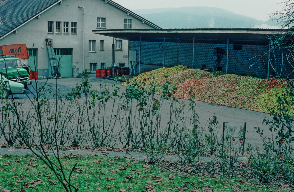 Dieser Mangel an Mostobst mag erstaunen, wurden doch noch ca. 1972 und 1975, wie auf den Bild-Nrn. 02206 und 02211 zu sehen ist, grosse Mengen an Äpfeln abgeliefert. Und 1944 war die Obsternte derart gross, dass Aussenlager auf freiem Feld angelegt und die Früchte kontinuierlich bis in die Januartage 1945 verarbeitet werden mussten (s. Bild-Nrn. 02187 und 02188).
