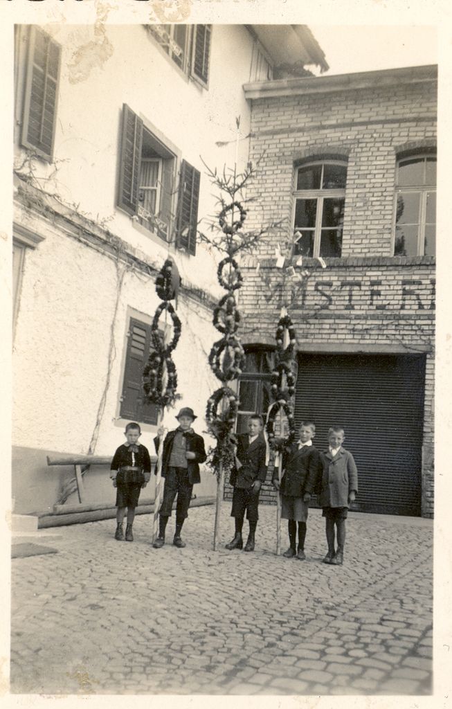Stolze Palmenträger vor der Mosterei Busslinger am Palmsonntag