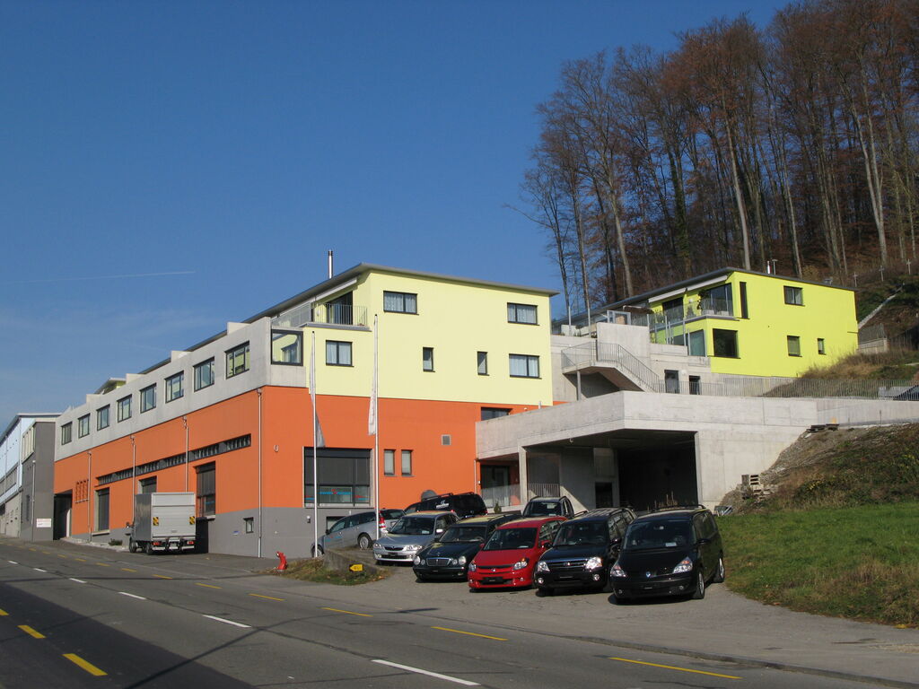 Das Wohn- und Bürohaus der Mosterei Busslinger, das vor dem Erweiterungsbau des Produktionsgebäudes von 1945 renoviert wurde.