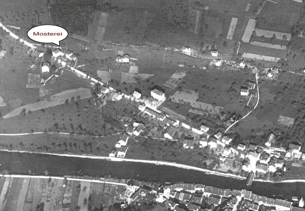 In Abweichung dazu ist auf dieser Aufnahme der Schriftzug "Mosterei" angebracht.